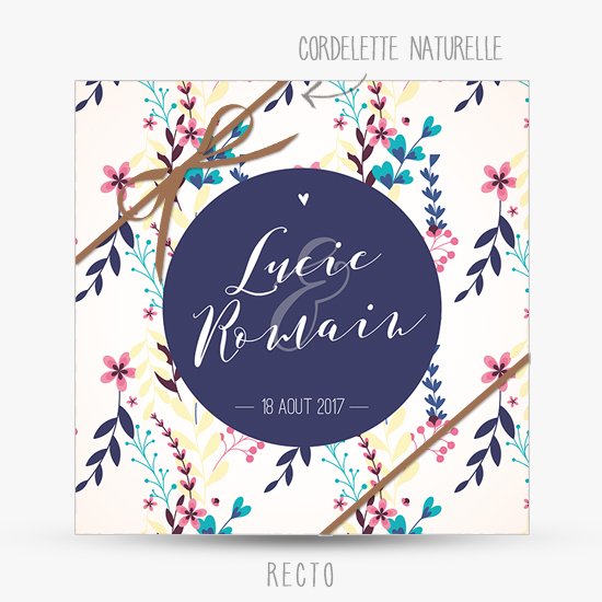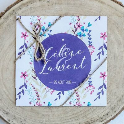 Le joli faire-part de mariage Pochette Champêtre inspiration champêtre et bohème.