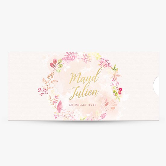 Le joli faire-part de mariage Pochette Fleurie inspiration pastel.