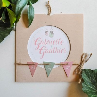 Le joli faire-part de mariage Pochette Champêtre inspiration champêtre et bohème.