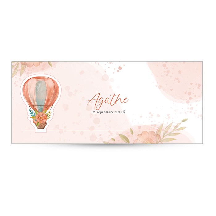 Regardez la montgolfière avancer au fur et à mesure que la carte intérieure est tirée. Inspiration aquarelle et thème fleuri, champêtre et doux avec teinte roses.